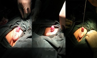 8、裁剪劈开之阴茎头两翼作阴茎头成形,系带重建,出血约5ml。